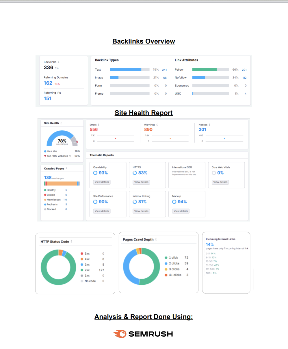 Backlinks Overview & Site Health Report