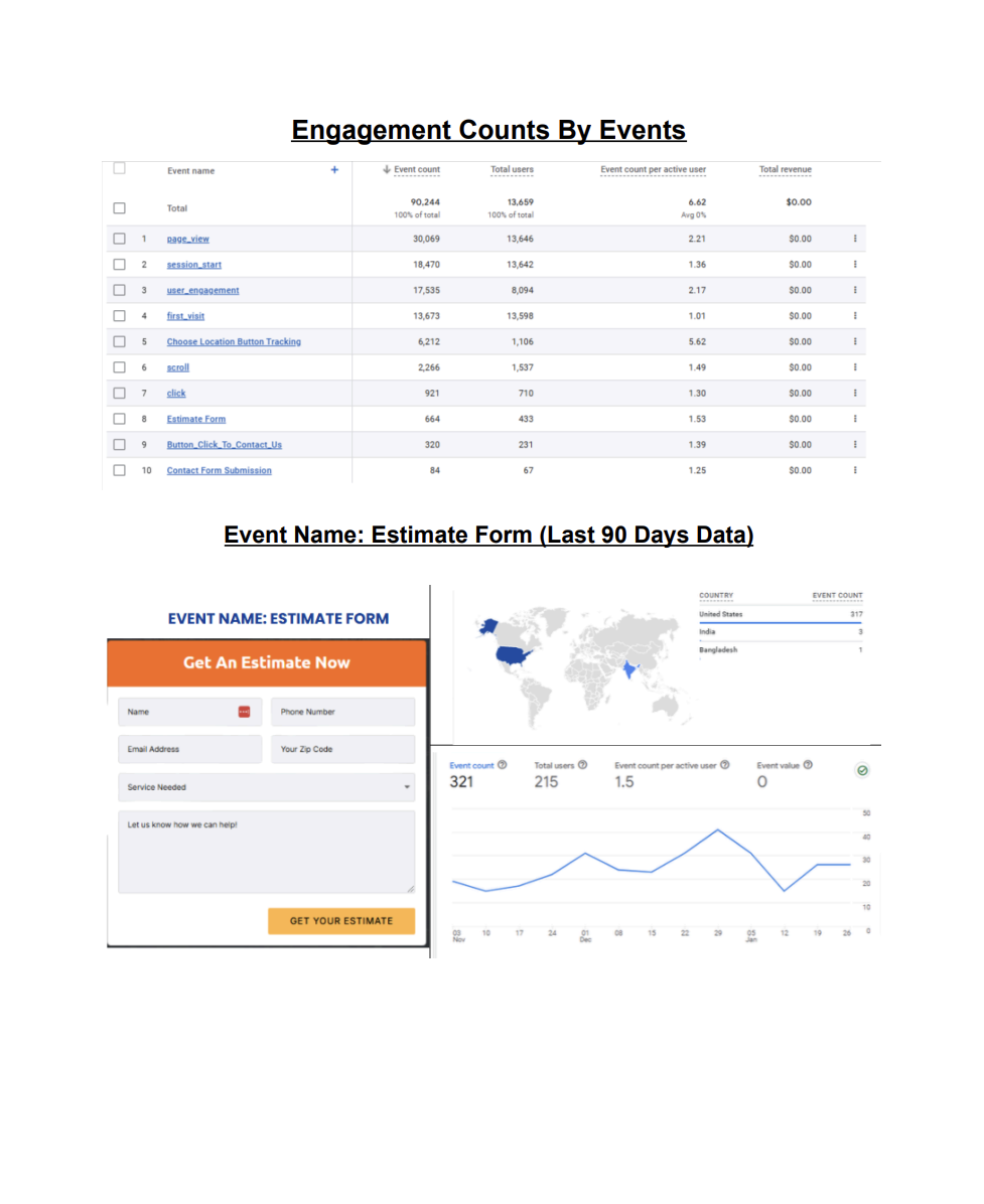 Engagement Counts By Events (Estimated Form Submission)