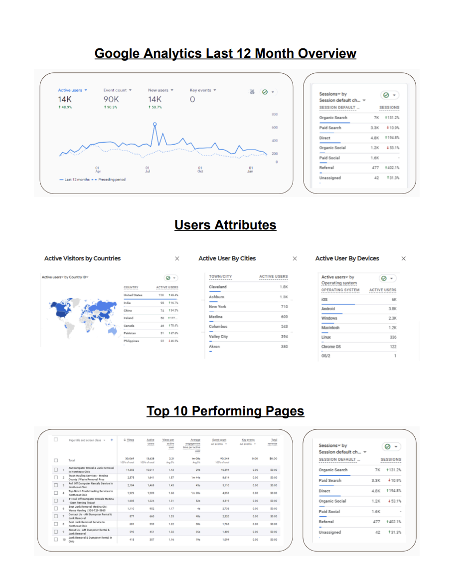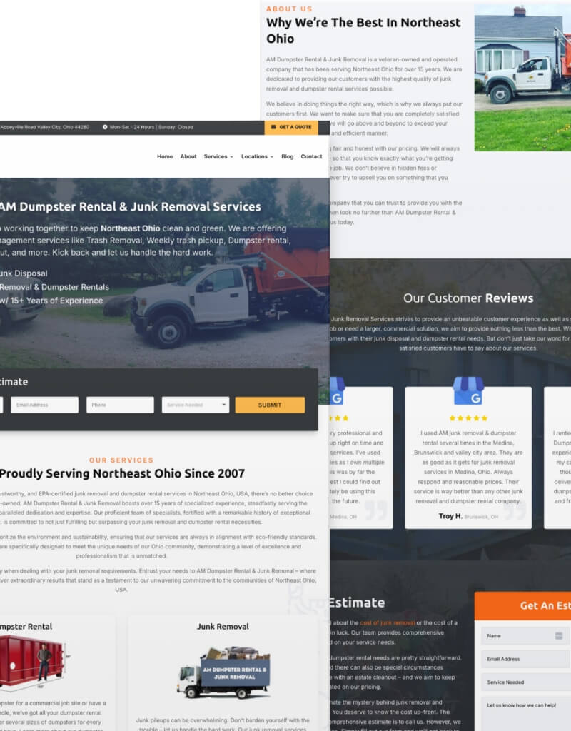 Our team started by reviewing AM Dumpster Rental & Junk Removal’s website, Google Business Profile, and current presence in local search. The goal was to understand where the business was losing clicks, trust, or conversions, so we could build a practical roadmap.
