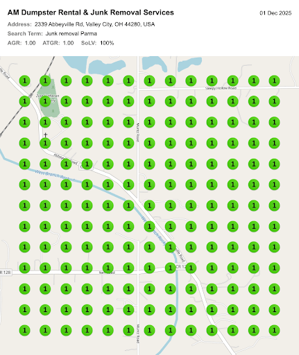 Local Viking Grid Ranking Report for "Junk Removal Parma"