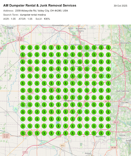 Local Viking Grid Ranking Report for "Dumpster Rental Medina"