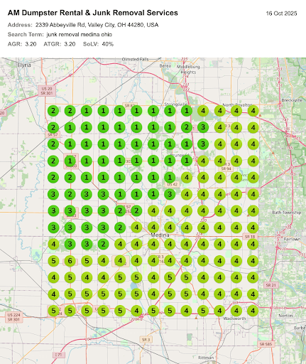 Local Viking Grid Ranking Report for "Junk Removal Akron"
